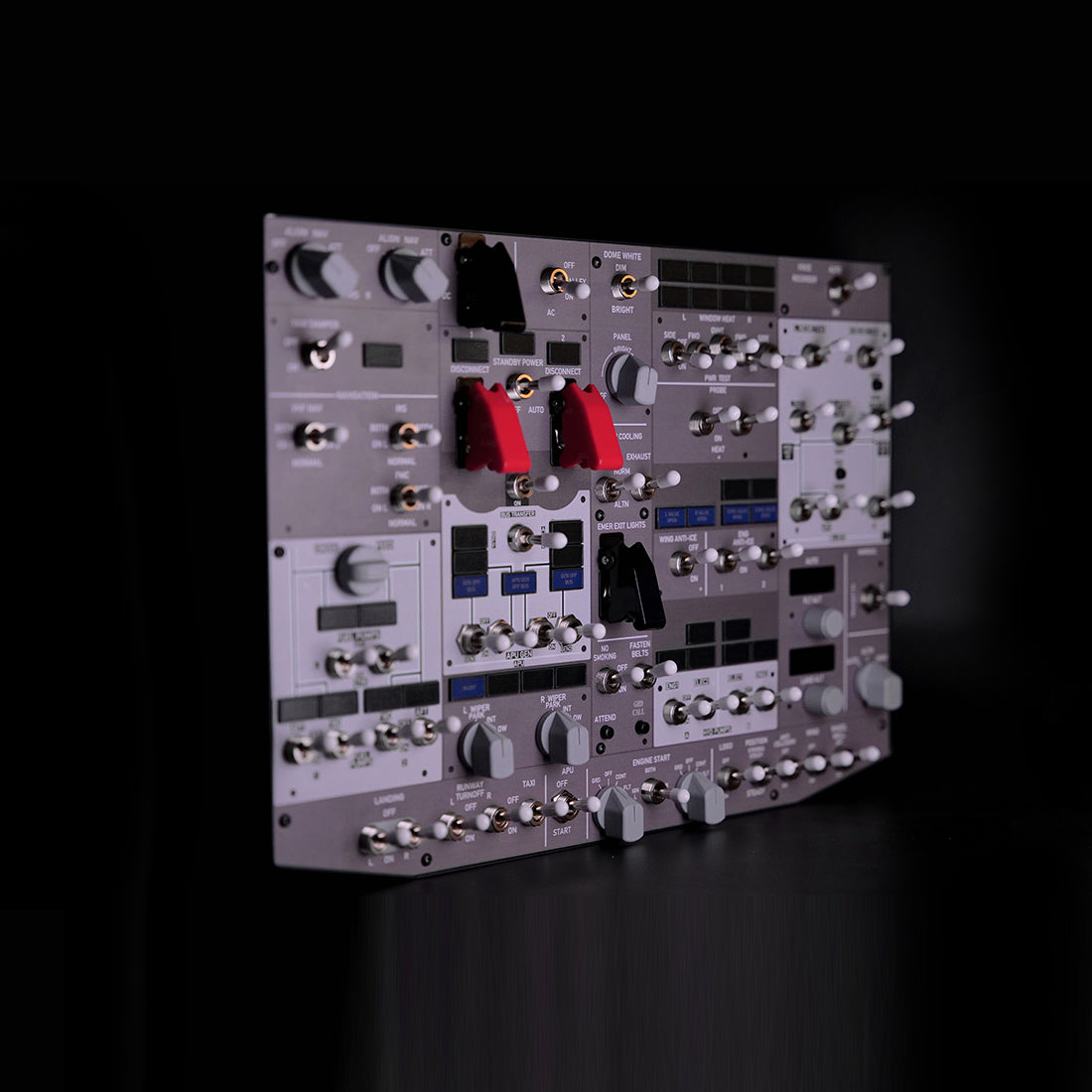 • Simulation-Grade Switches and Backlighting: High-performance switches, high-power LEDs, and travel-type buttons are used throughout. Selected switches feature automatic return behavior to mirror real aircraft logic. Operation requires only a single USB connection, with no additional external power source.